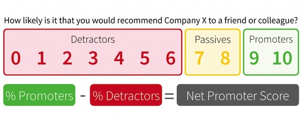 不過更 Detail 的推薦度,可以用 NPS (Net Promoter Score, 凈推薦分數)來計算,公式是: