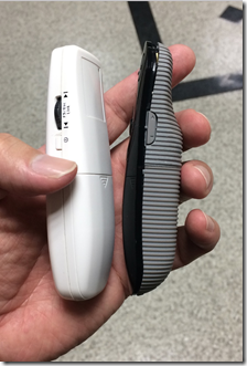(左邊為摔壞的簡報器,前面打開了.還好有白色備品)
