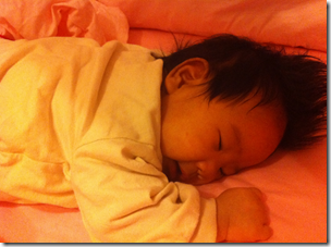 3.要一致性:如果您喜歡奶睡,那就奶睡吧。喜歡抱著她入睡,也沒問題。重點是不要小時候奶睡,有空的時候抱睡。等到大一點或忙一點 … 就開始叫她自己睡。這樣 Baby 可能要花一些時間適應(表示會大哭哭)。我認為一致性蠻重要的。選一個信任的方法,就作下去吧!不要變來變去反而不好!(上面的書都一致建議:不要奶睡!因為每隔 40min ~ 60min Baby 就會醒來一次,若發現環境與剛才不同就有可能會哭哭,所以應該在 Baby 快入睡前,就抱她到她的床上,比較睡的好啊)